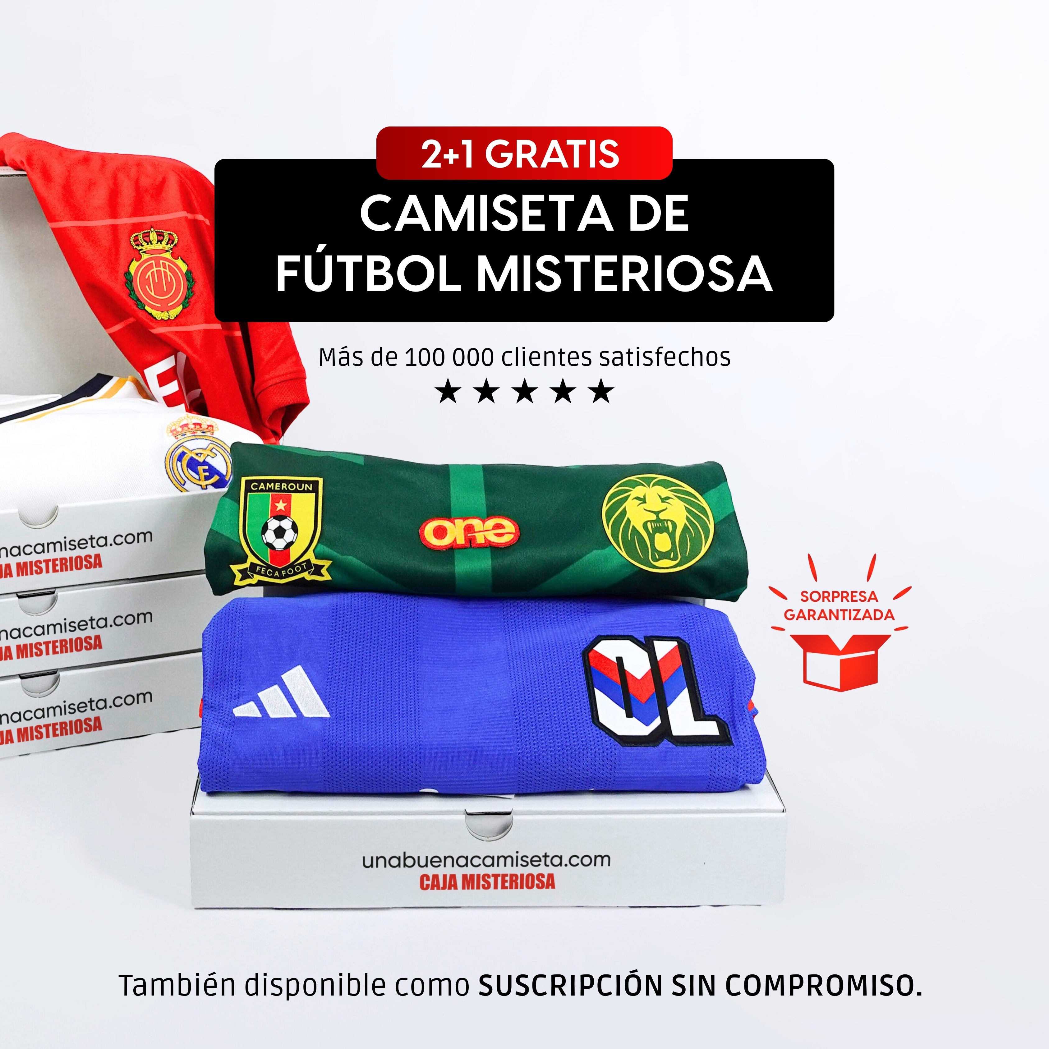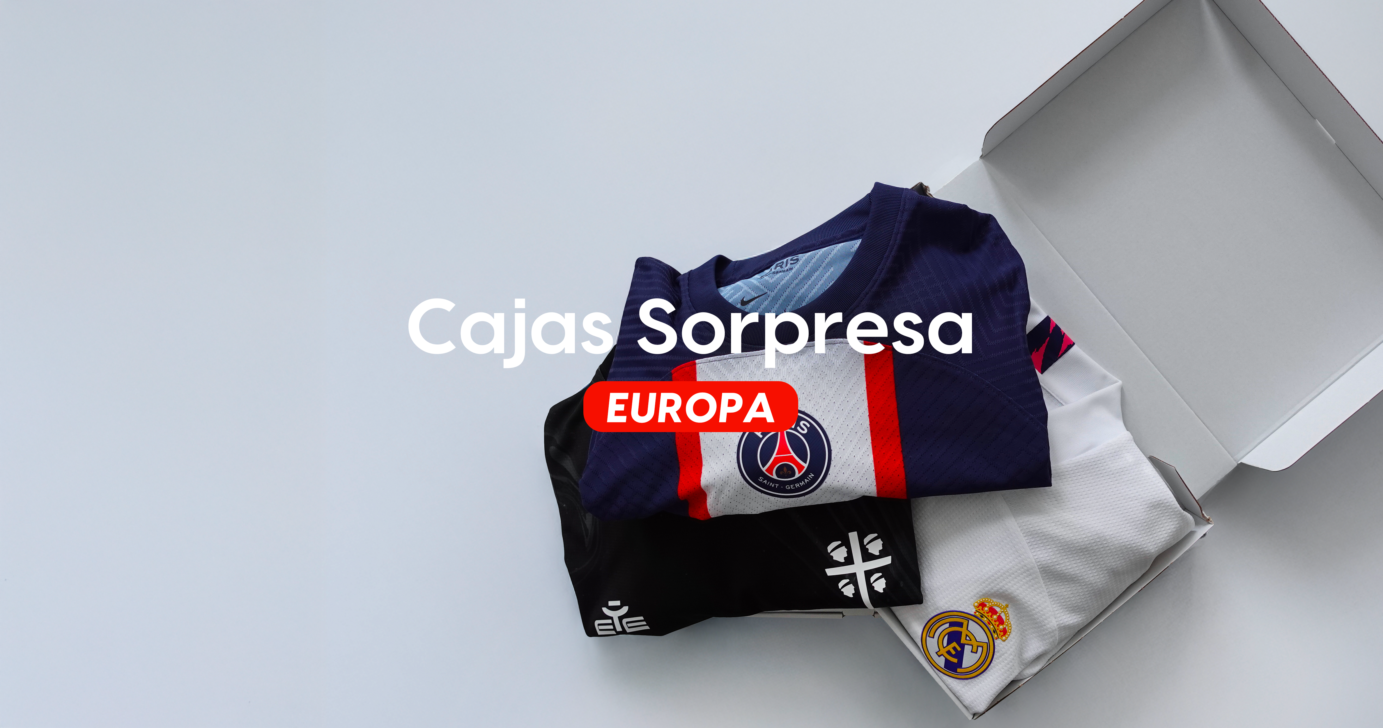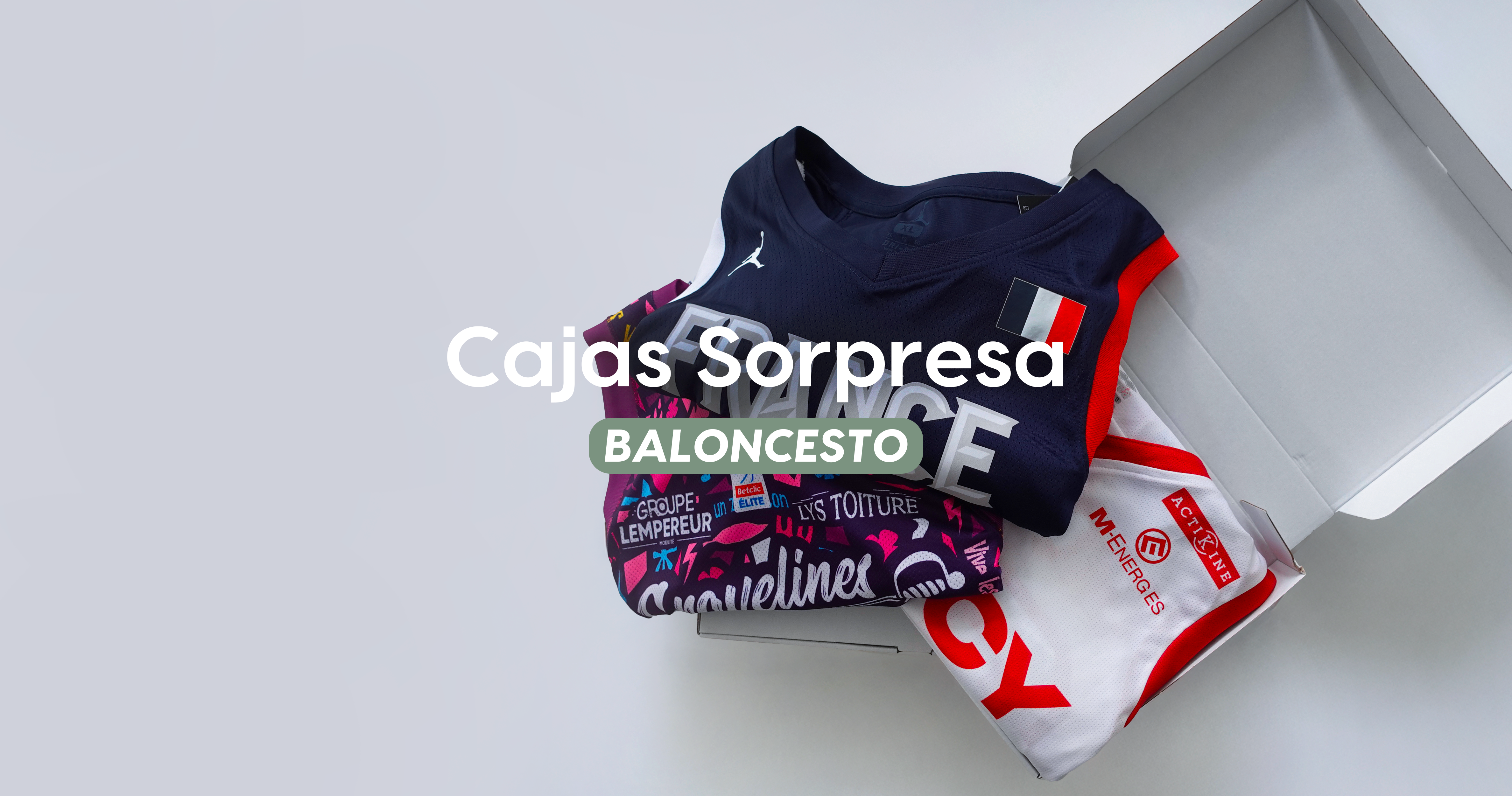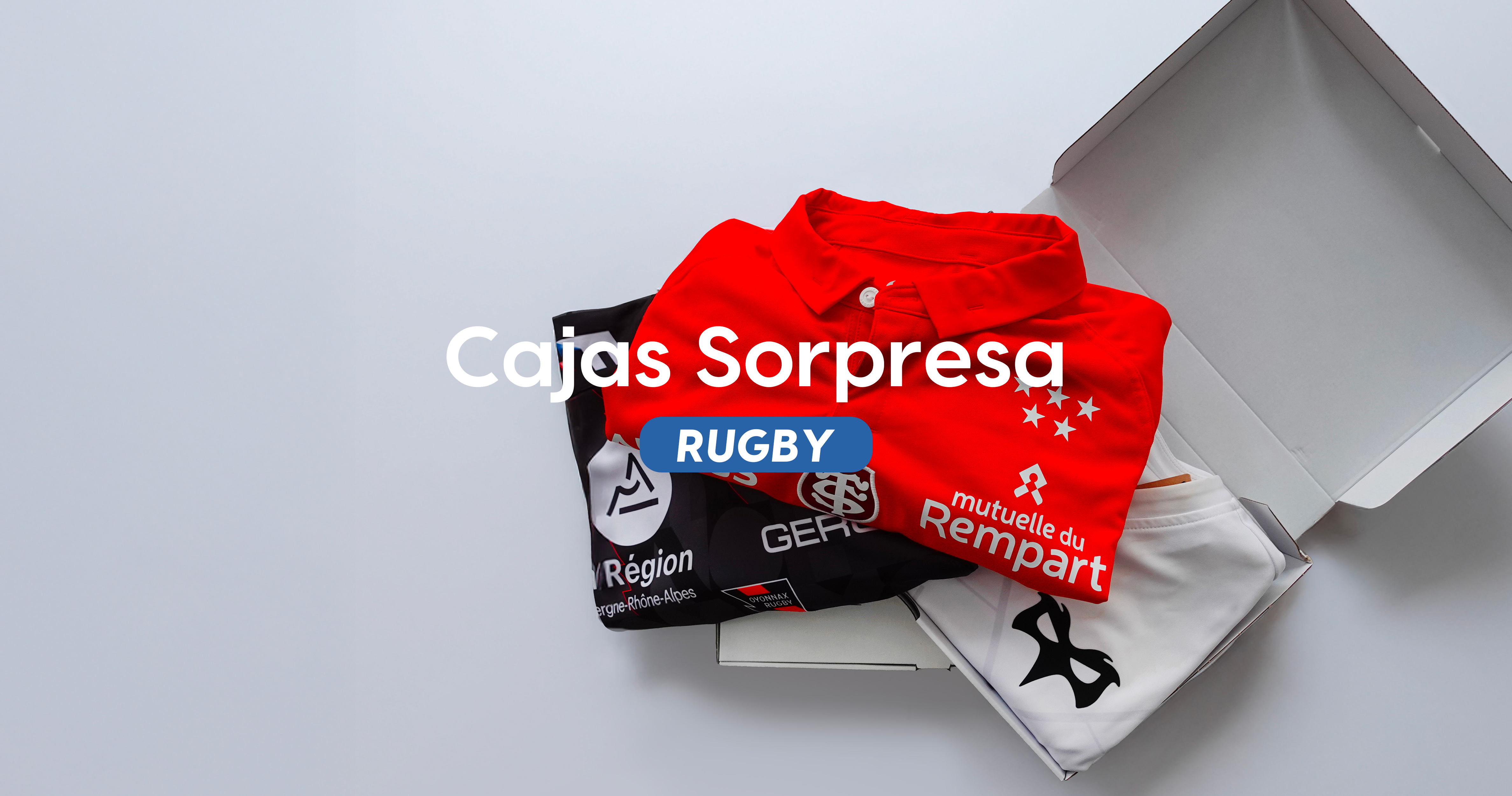 Elige tu universo: fútbol, rugby o baloncesto. Cada caja contiene una camiseta sorpresa auténtica, cuidadosamente seleccionada por nuestro equipo.